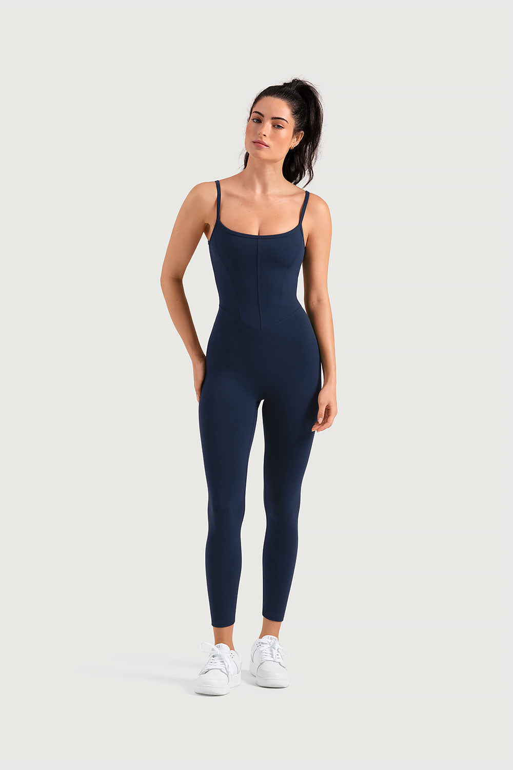 Whether you’re heading to the gym or just out and about, our Apex Camisole Unitard is sure to add a dose of sophisticated style to your activewear wardrobe. Featuring a classic scoop neckline, camisole straps and bodice front seam details.