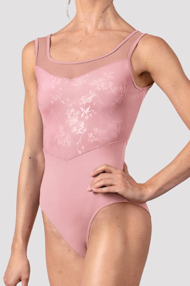 Our Honey Tank Leotard features soft mesh tank straps, a low scoop back and laser printed floral bodice. Printed florals catch the light with every movement, elevating every silhouette. Discover the Lumina Collection in romantic Vintage Pink, captivating Eclipse Blue, and timeless Black.