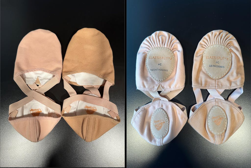 ⢠The elastic system in the midsection of the 'Elastosplit X' replaces materials in the mid-foot to reveal the dancer's arch