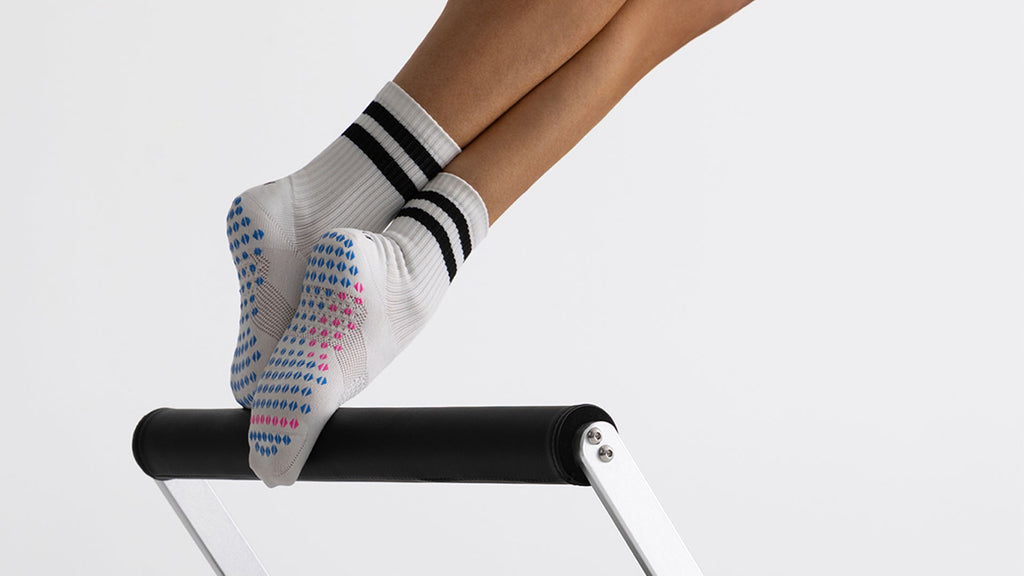 Introducing the CoreGrip Pro Pilates Sock; a revolution in grip footwear - precision engineered for ultimate stability. Created for anyone committed to deepening their Pilates or Barre practice, the CoreGrip Pro Pilates Sock delivers unmatched traction and stability, even through your most dynamic movements. Featuring dual-layer non-slip technology, CoreGrip Pro secures your foot internally while delivering confident traction on any studio surface. The foot hugging design enhances alignment, stability, and power - whether you're flowing through mat work or holding form on the reformer. The CoreGrip Pro Pilates Sock ensures confidence and precision in every movement.