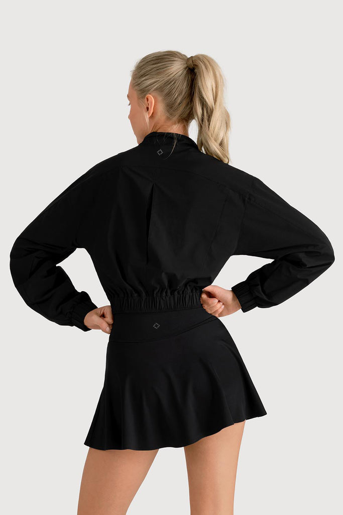Level up your activewear ensemble with the Apex Cropped Bomber Jacket, featuring a cropped boxy silhouette, ribbed cuffs and hem and zip front fastening. The perfect layering piece for your activewear wardrobe, taking you from studio to street.