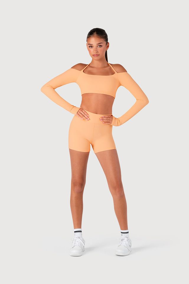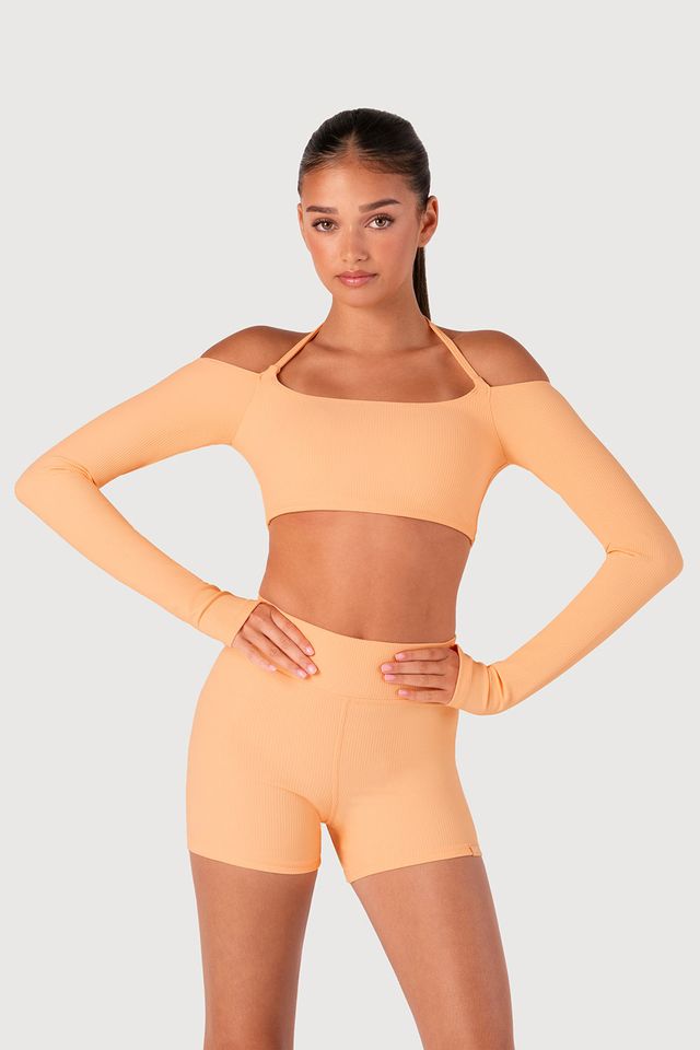 Our best-selling Bolero Crop Top is back in new rib fabric! Our Girls Rib Bolero Crop Top brings a fashion-forward edge to her active wardrobe. The cropped, off-the-shoulder silhouette features long sleeves with thumb holes and a camisole halter strap for a secure, comfortable fit. It’s a standout layering piece for studio style and beyond.