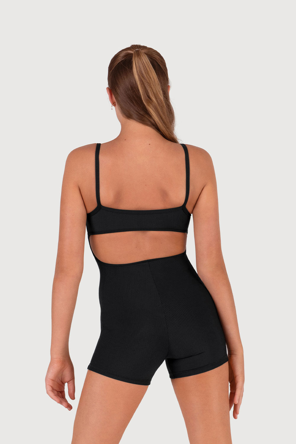 Designed to stand out in the studio, our Girls Rib Cut Out Unitard combines clean lines with a modern edge. Featuring a classic scoop neckline with slim camisole straps, it offers a secure, comfortable fit for every movement. The cut-out back detail adds a stylish touch, while the short leg length allows ease and confidence through every routine.