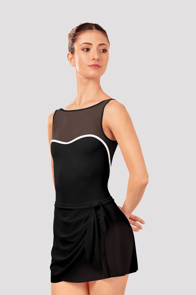 A graceful finishing touch designed to complement any leotard in our Atlantis Collection. Our Aras Mesh Wrap Skirt features a fixed wrap design with a delicate tie at the side, offering a secure fit and a beautifully draped silhouette. Crafted from soft, lightweight mesh, this short-length skirt adds fluid movement and subtle elegance without distracting from your lines.