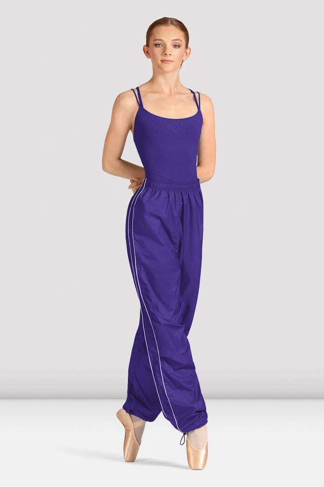 Our Ladies Mirella Celeste Piping Ripstop Pants are a warm-up must have! Featuring an elasticated waist, double piping along the sides and toggle bottom for a secure fit around the ankle, these will be an essential in your dancewear wardrobe. Our Mirella Celeste Collection by BLOCH pairs elegant dancewear with versatile separates. Inspired by the night sky, each piece features a soft textured dot print set against deep, luminous color.